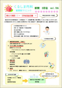 くるしま内科新聞3月号は2次性高血圧についてです。